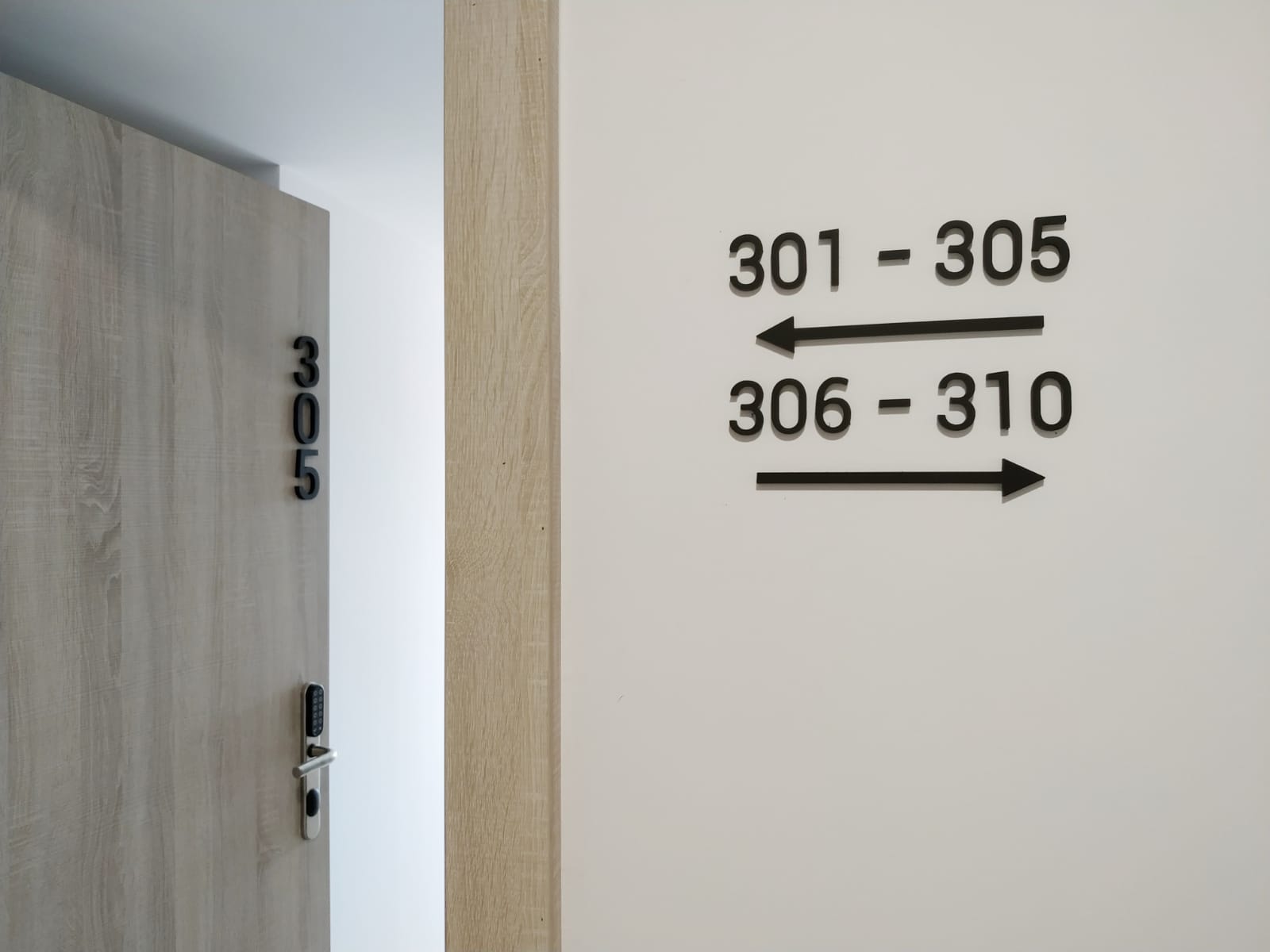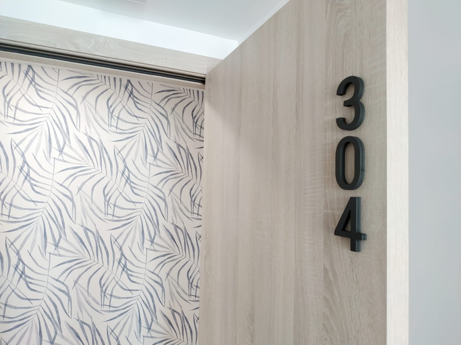 Además, cuando entras en la recepción te recibe un precioso mural autoadhesivo que se completa con un rótulo corpóreo lacado, un diseño que además se ha utilizado con vinilo translúcido en las puertas de cristal de la entrada. ¡Y más cosas que hemos hecho! Bastidores para las habitaciones, toda la señalética de habitaciones en PVC…